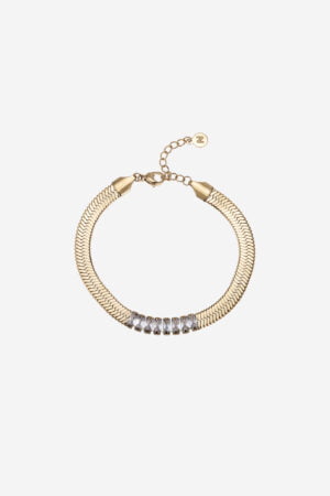 Say hello to our new bracelet style! It is a beautiful somewhat thicker bracelet with square shaped stones incorporated. The bracelet gives something extra shine to your look. It can be combined well with other jewelry and also fits great as a set together with the necklace.